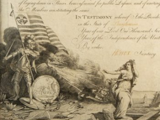 View collection items from the Institute’s library and museum at Anderson House with specific connections to each of the four achievements of the American Revolution: our independence, our republic, our national identity and our highest ideals, as shared during a virtual visit with Ms. Mancino’s fifth grade students at Two Rivers Public Charter School. To learn more about: the artillery used to win the war visit Boom! Artillery in the American Revolution, Margaret Corbin’s experience as part of cannon crew visit Margaret Corbin, Revolutionary, and Deborah Sampson’s extraordinary service as a soldier visit The Female Review: or Memoirs of an American Young Lady.